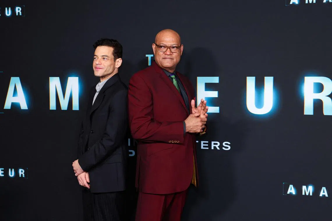 Rami Malek (left) and Laurence Fishburne at the premiere of The Amateur in New York City on April 2.