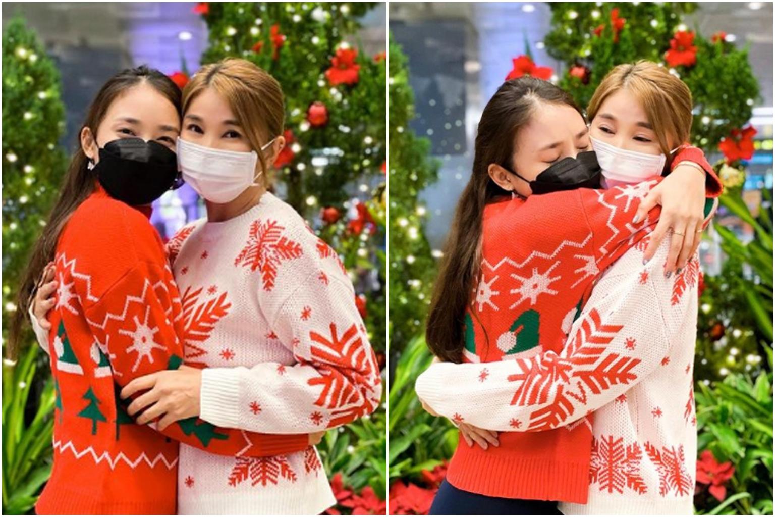 SINGAPORE - Local actress Chen Xiuhuan bid an emotional farewell at the airport to her second daughter Shalynn Tsai, who is studying abroad.