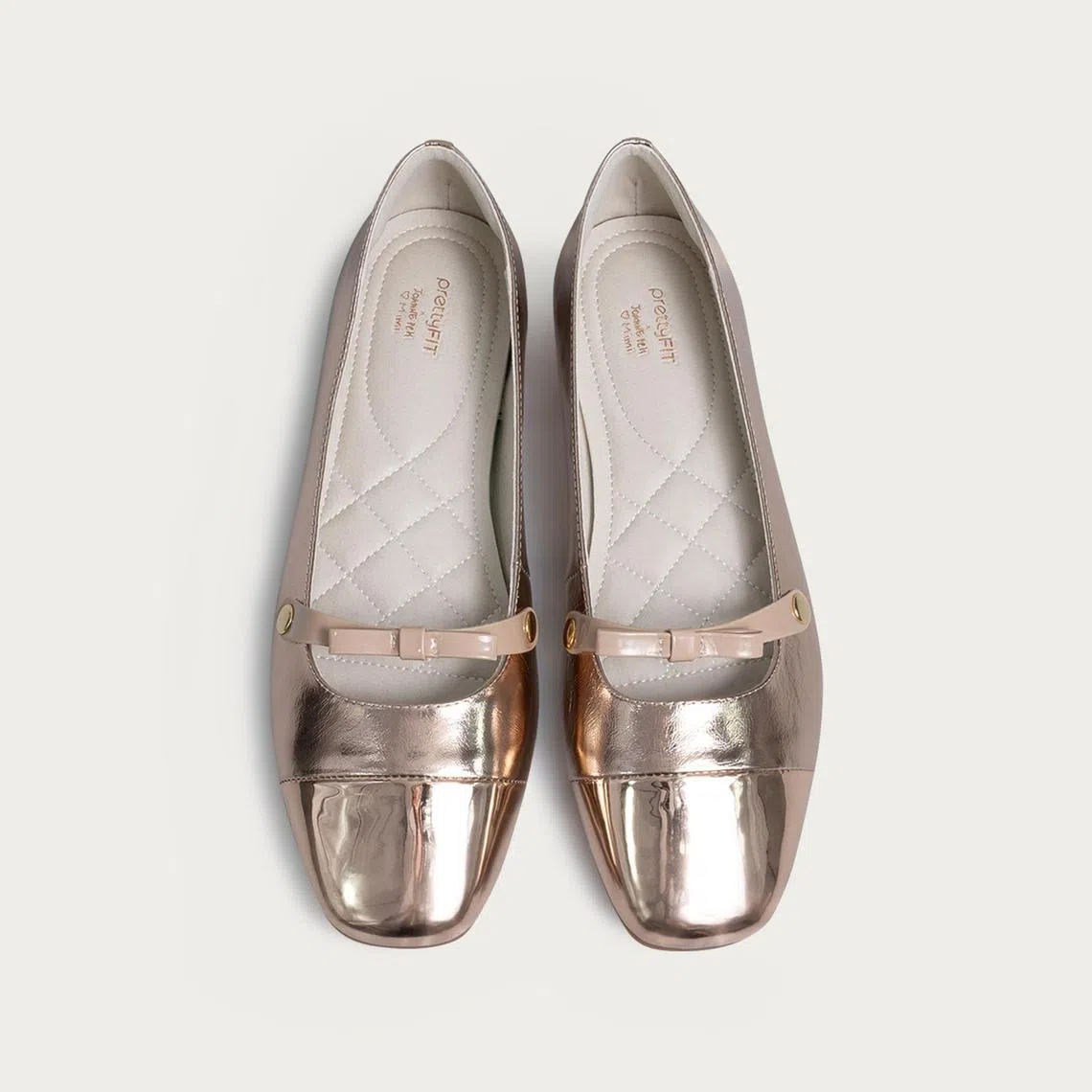 Rose-gold Celestial Flats from the PrettyFit x Joanne Peh & Mimi collection.