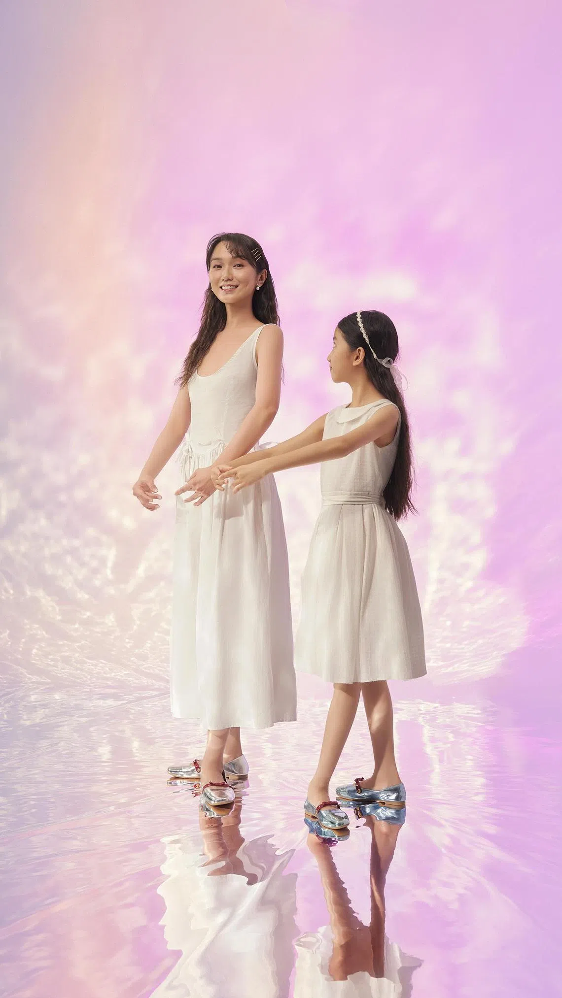 Singaporean actress Joanne Peh and her daughter are wearing the Celestial Flats from the PrettyFit x Joanne Peh & Mimi capsule collection.
