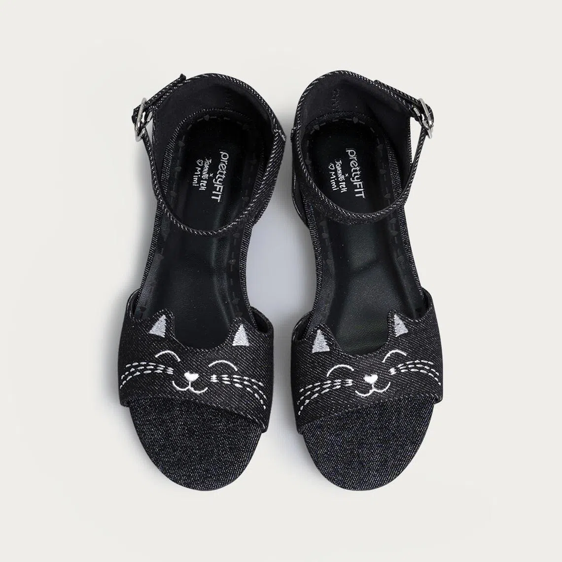 In the end, they compromised on a cat motif. The Misty Sandals ($63.90) – with 5cm block heels for women and 2cm heels for girls – feature an embroidered cat face and come in white, blue and black.