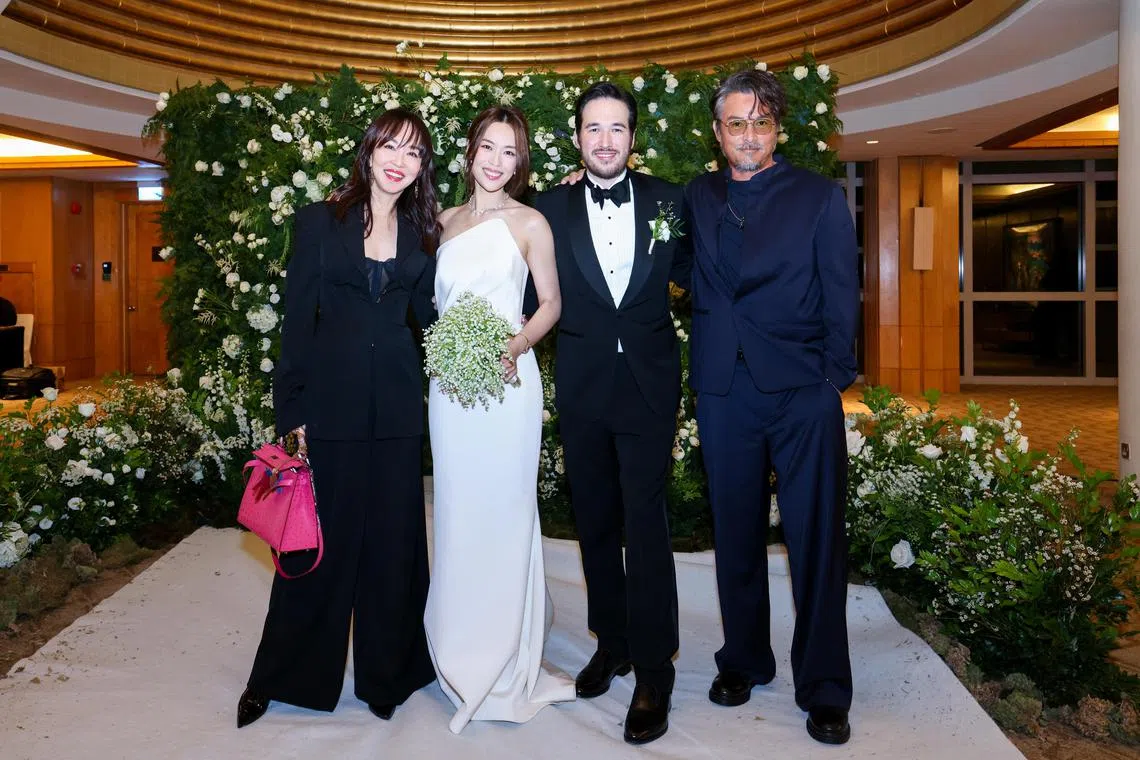 Celebrity couple Fann Wong (far left) and Christopher Lee (far right) at Rebecca Lim’s wedding.