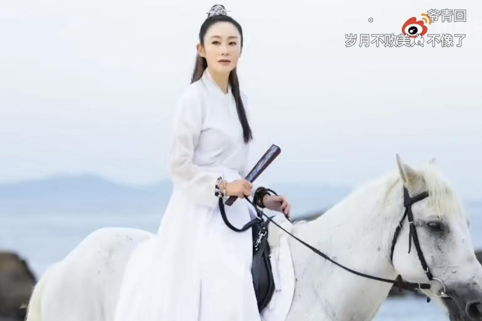 With Taiwanese singer Wakin Chau's classic song A Life Of Fighting Is But A Dream as the background music, the video showed Cheung wearing a white period costume, carrying a fan and riding on a horse by the sea like the Mongolian princess she played in the film based on late author Louis Cha's novel The Heaven Sword And Dragon Sabre.
