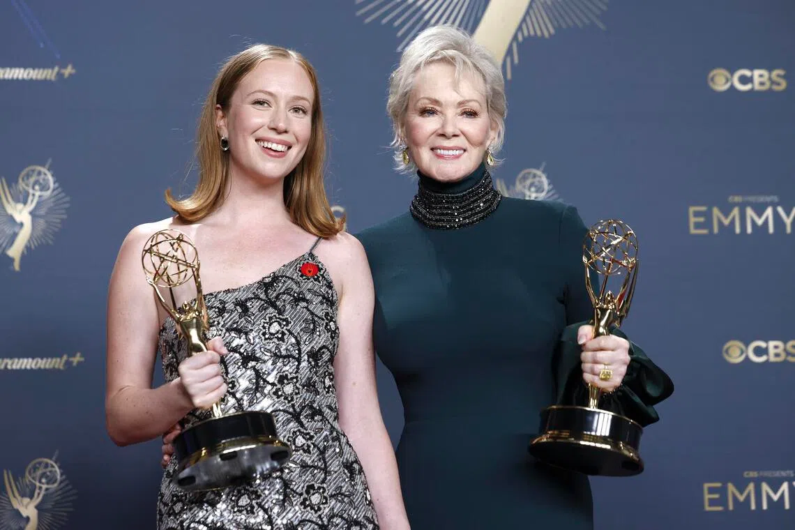 Actress Jean Smart (right) and co-star Hannah Einbinder during the 77th annual Emmy Awards ceremony in Los Angeles on Sept 14.
