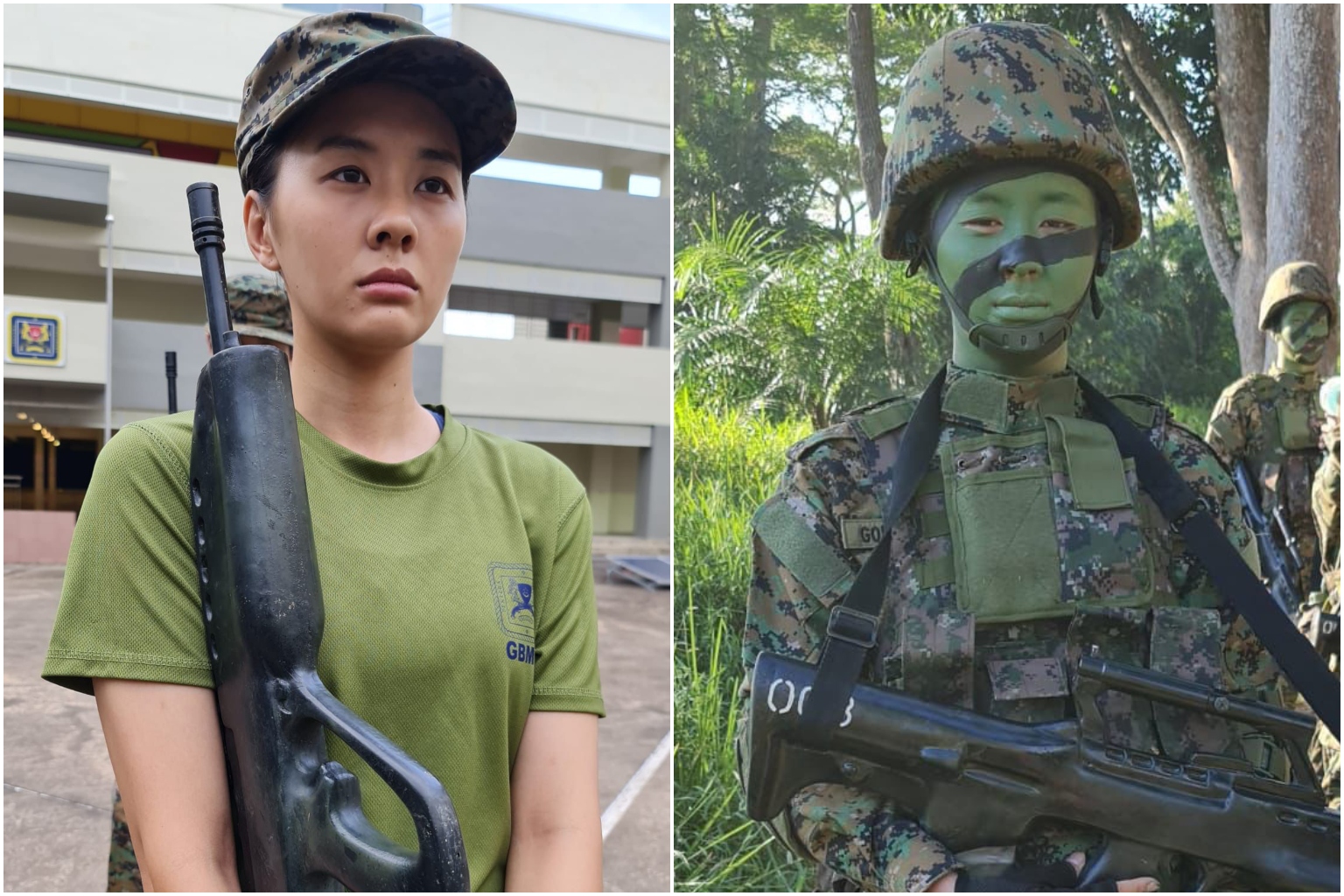 Behind the scenes photos of actress Samantha Tan during the filming of Ah Girls Go Army.