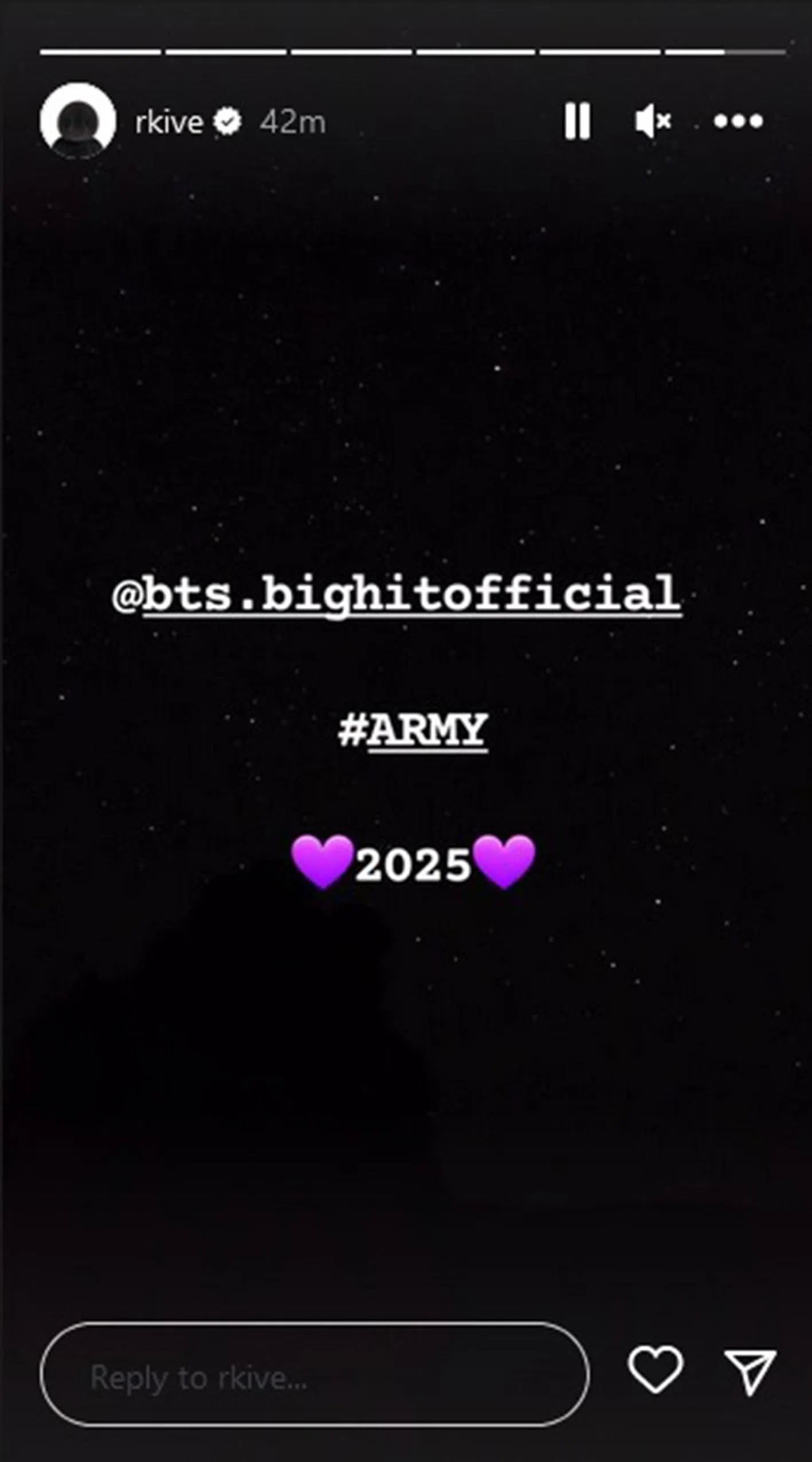 After news of the renewal was announced, BTS leader RM posted on Instagram Stories on Wednesday a photo of part of his contract as well as the numbers “2025” with the hashtag #ARMY, referring to the name of the band’s fan base.