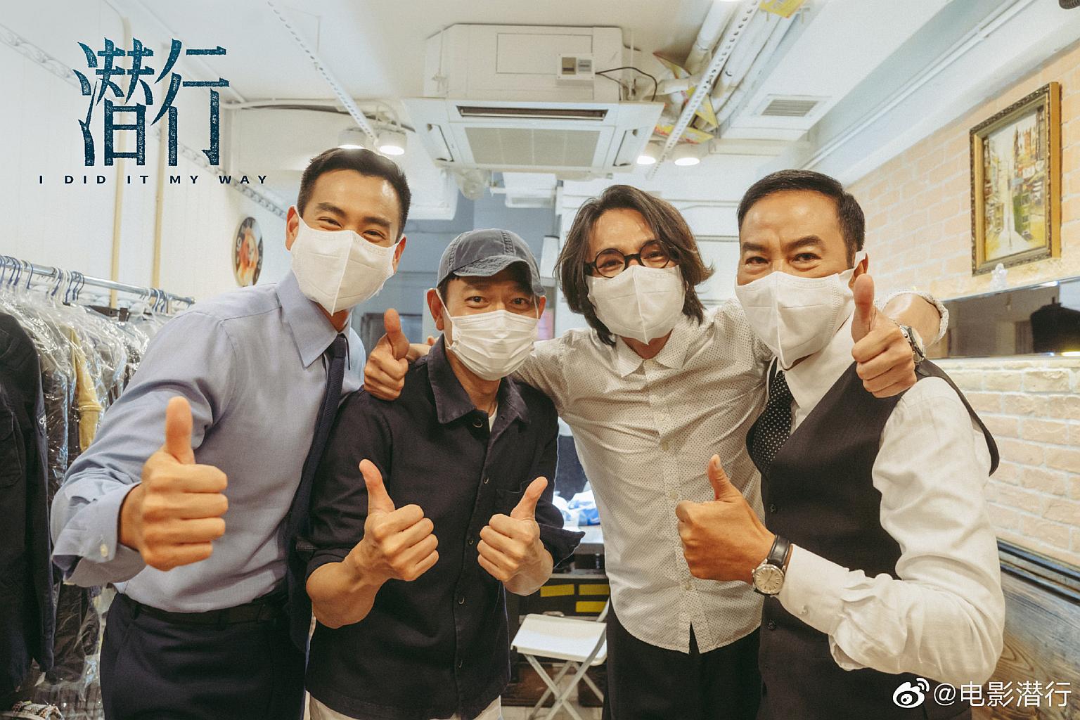 (From left) Eddie Peng, Andy Lau, Gordon Lam and Simon Yam celebrate the completion of filming of the movie I Did It My Way.