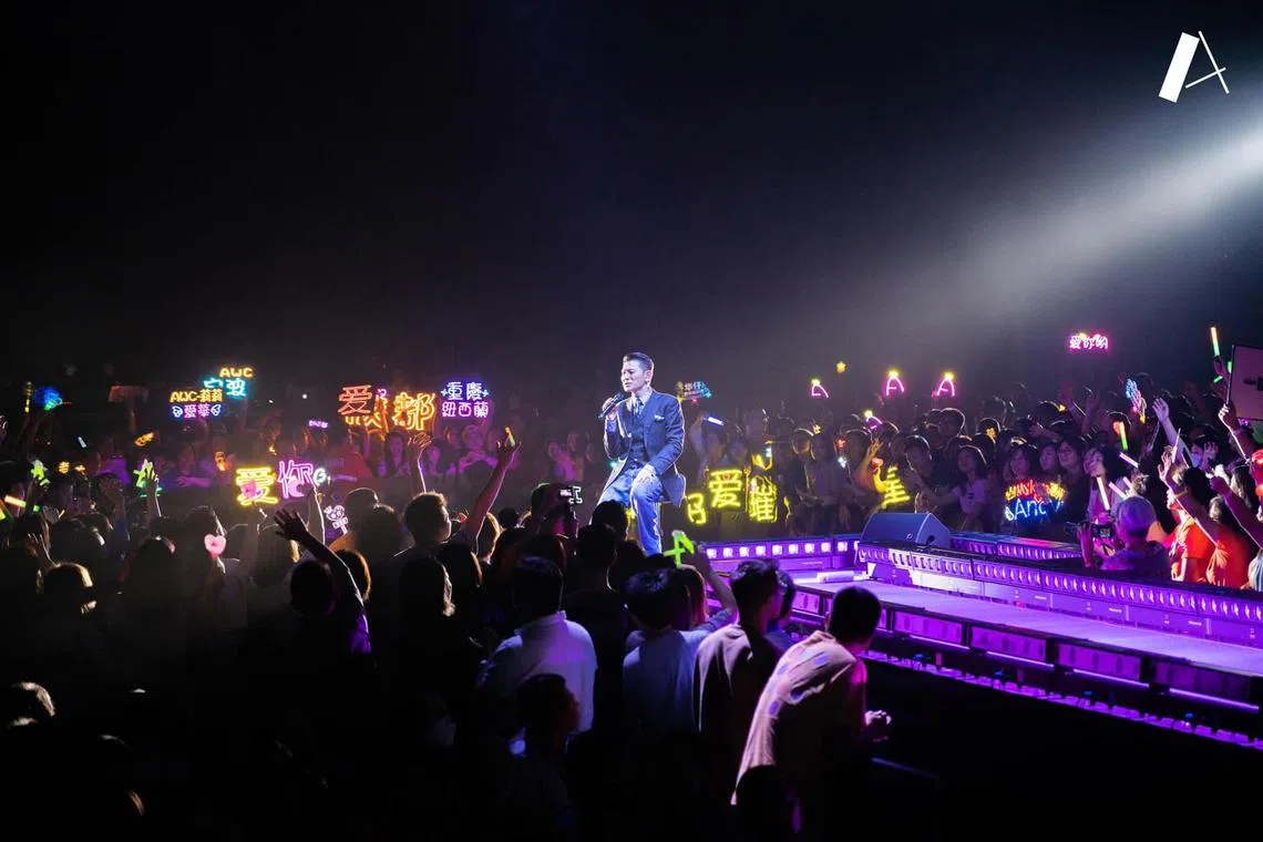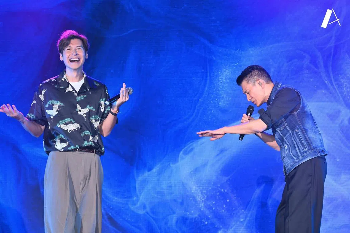 Celebrity singing couple and special guests George Lam and Sally Yeh performed Lam’s classic Dare To Love Me, while actors Carlos Chan and Dee Ho seated in the front row were invited on stage by Lau to sing Secret Admiration and Having Fun Alone respectively.