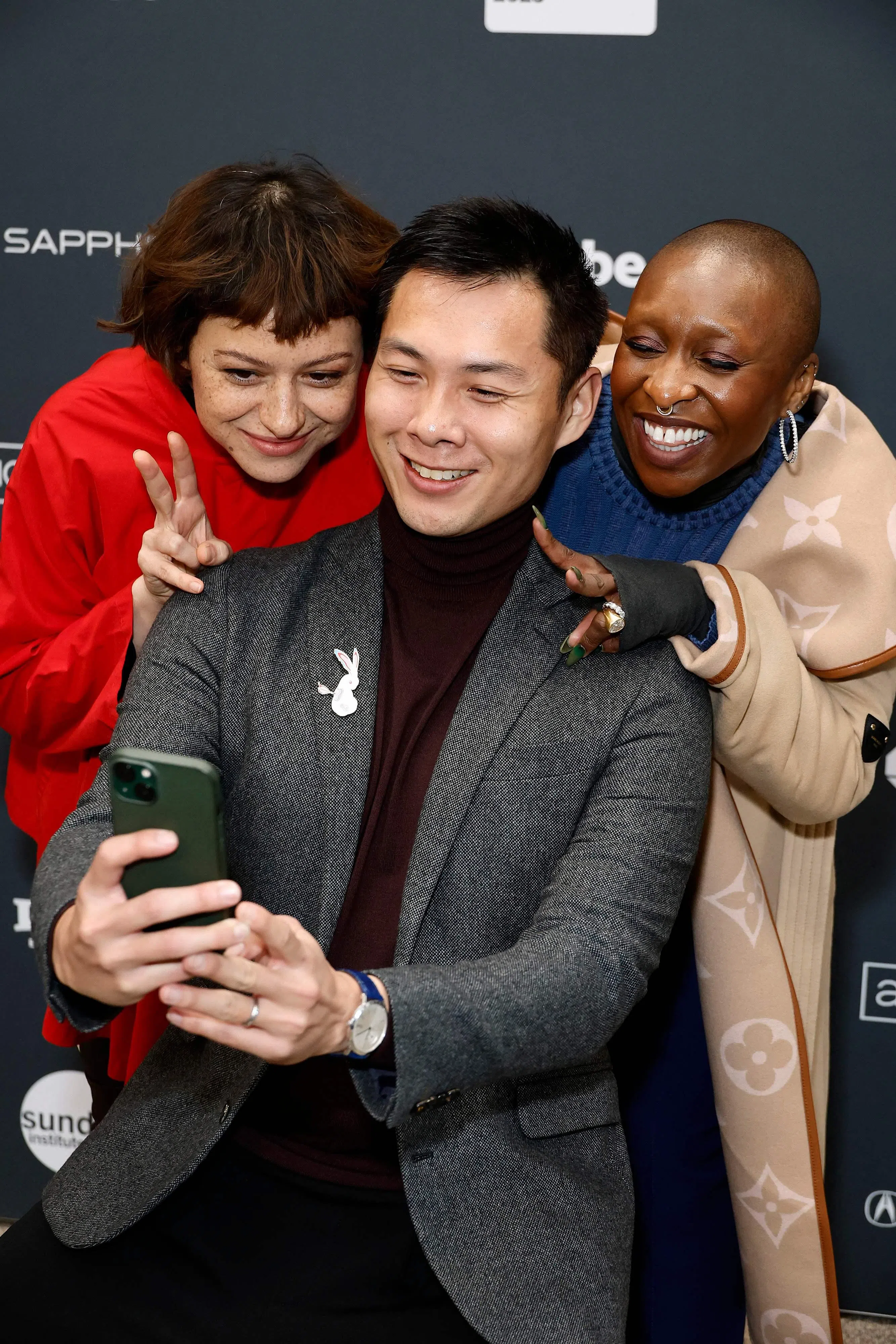 (From left) Actress Alia Shawkat, director Anthony Chen and actress Cynthia Erivo at the 2023 Sundance Film Festival premiere of Drift at Eccles Center Theatre in Park City, Utah, on Jan 22.