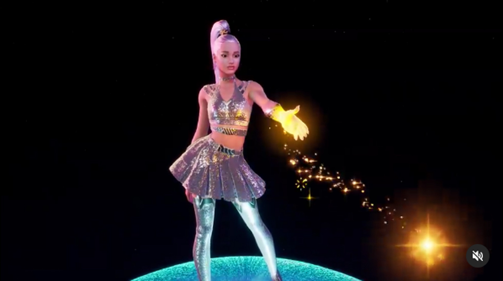 The 28-year-old singer's avatar is a human-fantasy creature hybrid dressed in either a silver skirt and top or a short outfit made of blue scales.