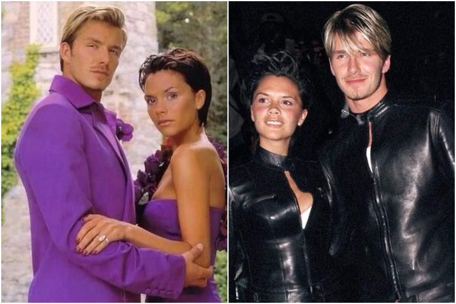 He included a snap of them in their all-purple wedding attire from 1999, as well as one of them in full leather outfits that same year.