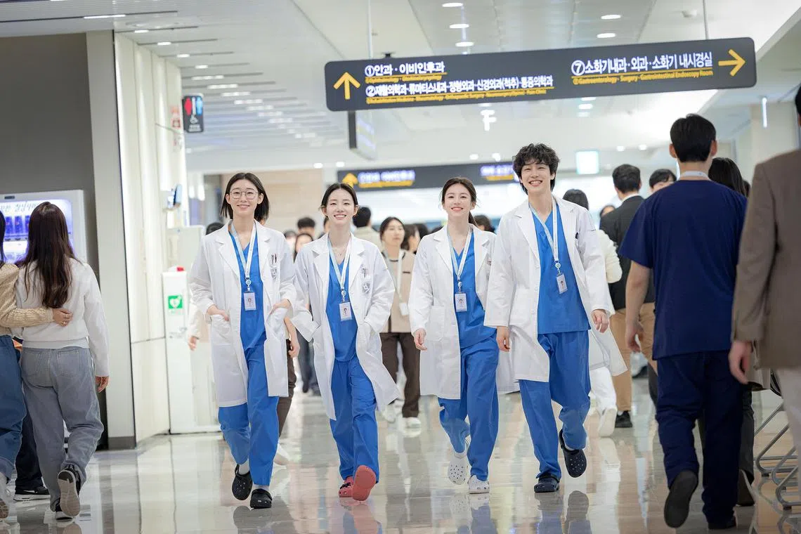 The characters are seen working long hours, a reality said to be faced by South Korean medical interns and residents.