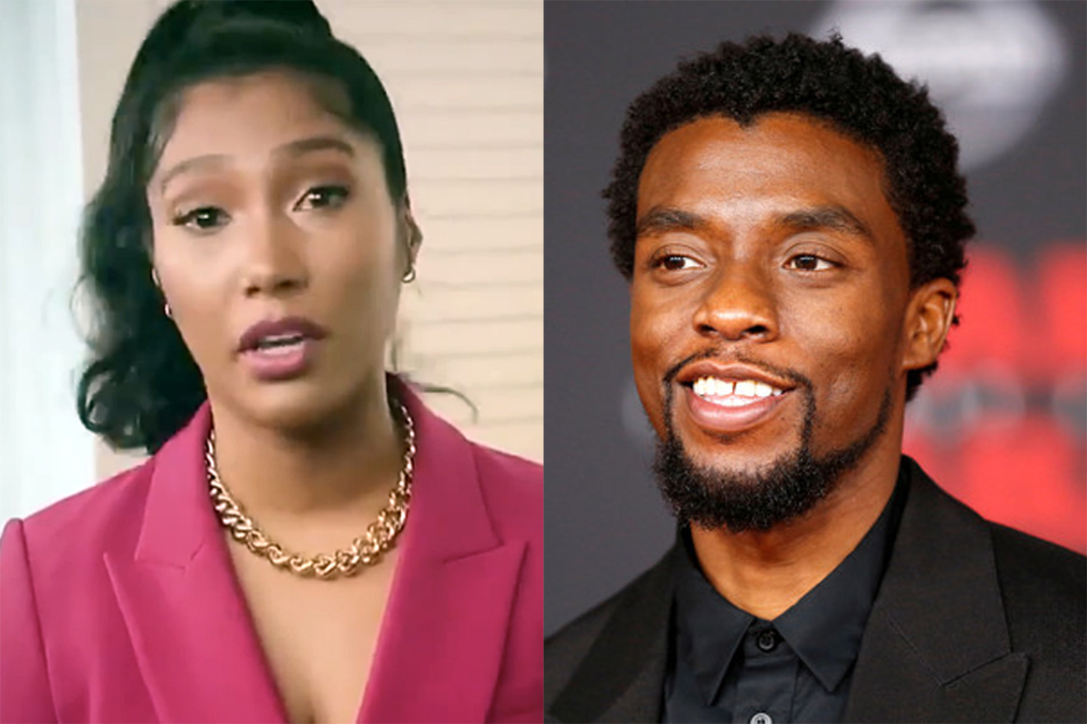 Simone Ledward (left) called her late husband Chadwick Boseman (right) "the most honest person I ever met", as she accepted an award on his behalf at the 2021 Gotham Awards.