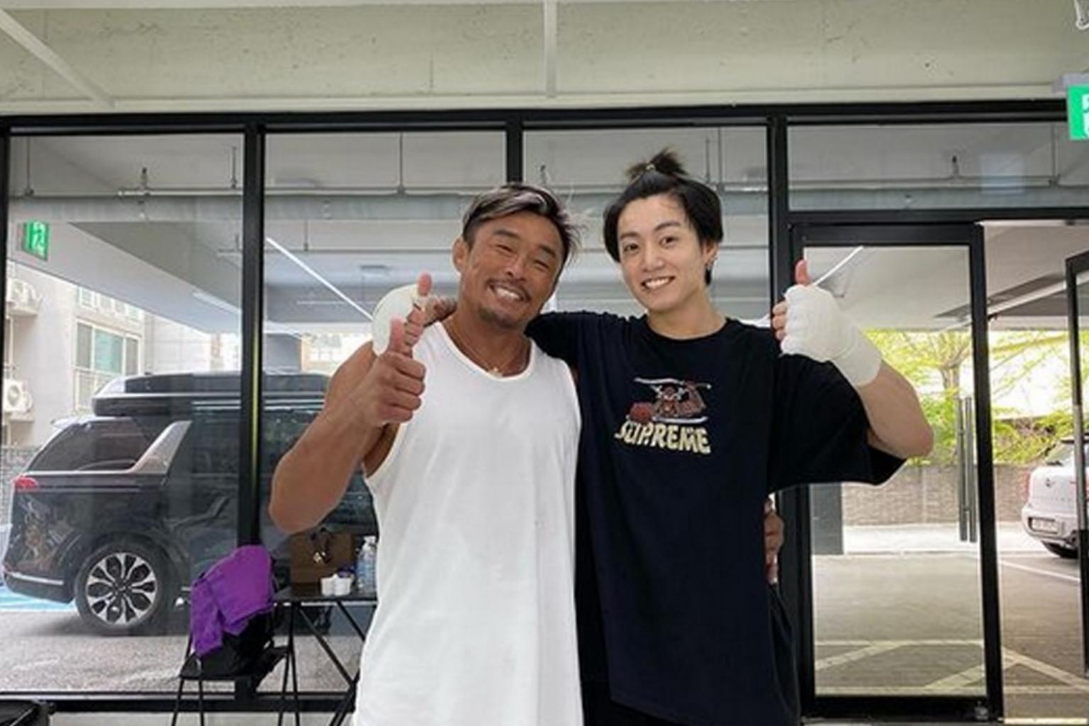 On Wednesday (June 29), Akiyama shared on social media a short video of him and Jungkook sparring and a photo of them giving a thumbs-up, with the caption: "Nice fight".