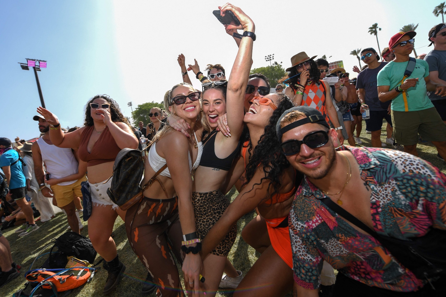 Festival goers dance at the Coachella Valley Music and Arts Festival in Indio, California, on April 16, 2022.