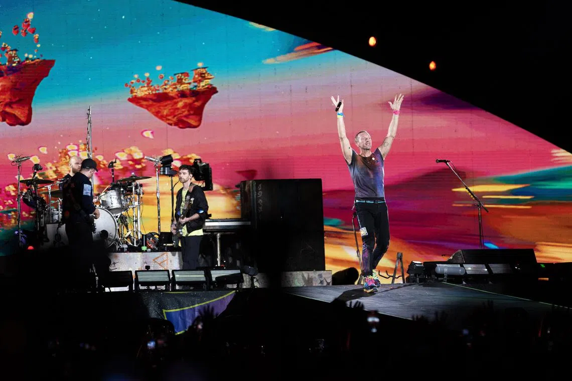 Coldplay singer Chris Martin (right), guitarist Jonny Buckland (left), bassist Guy Berryman (second from right) and drummer Will Champion (second from left) performing at the National Stadium on Jan 23.
