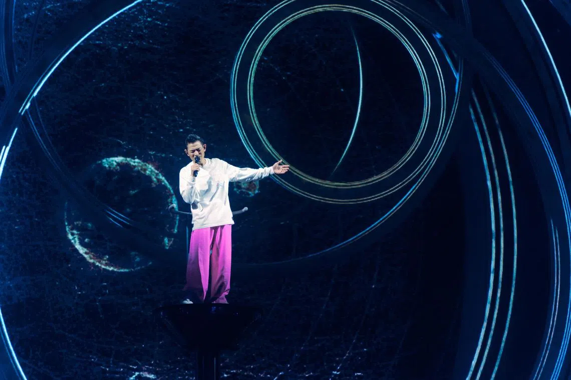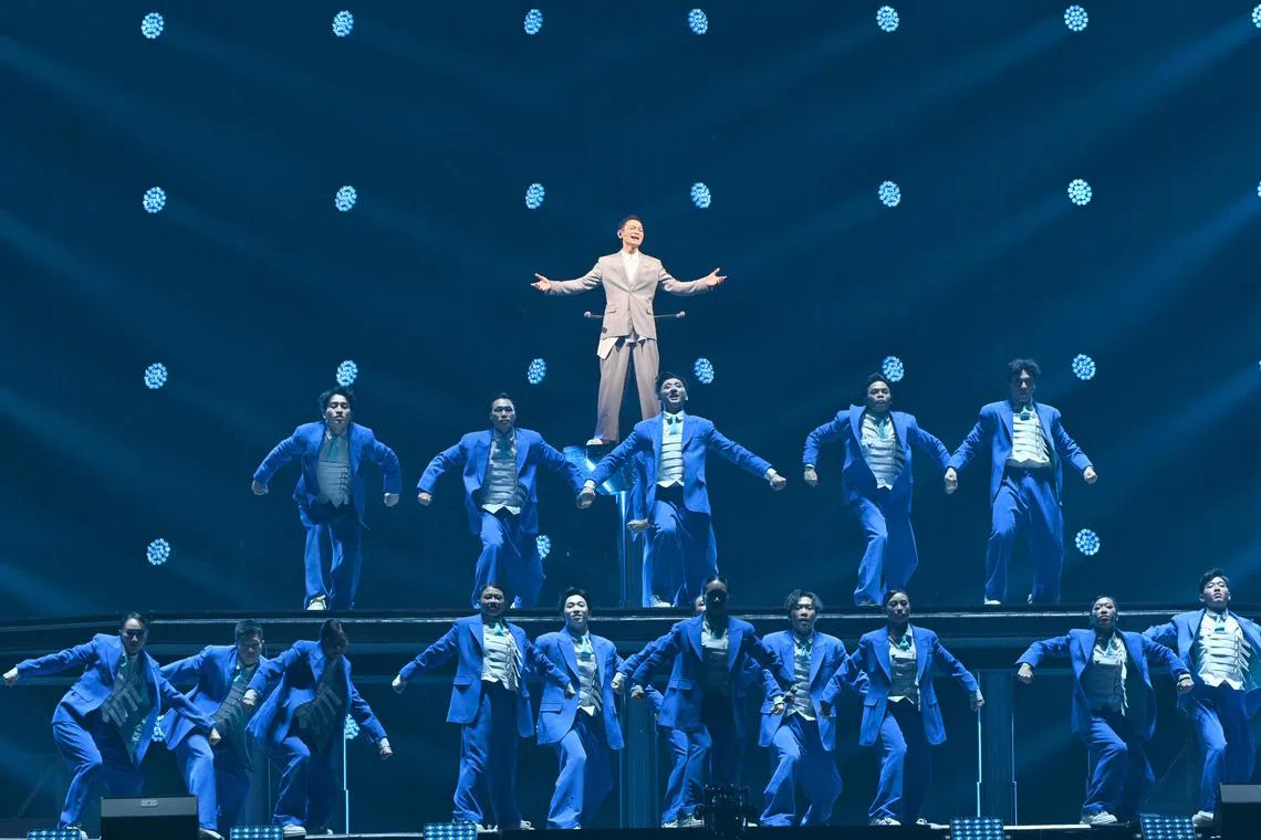 His 165-minute show – part of his Today... Is The Day tour – started on a joyous note with a dance version of Mandarin number Today (1995), about seizing the day and celebrating the present. Dressed in a grey suit and standing on a platform, he struck a confident figure against a backdrop of lights and supported by 24 backup dancers.
