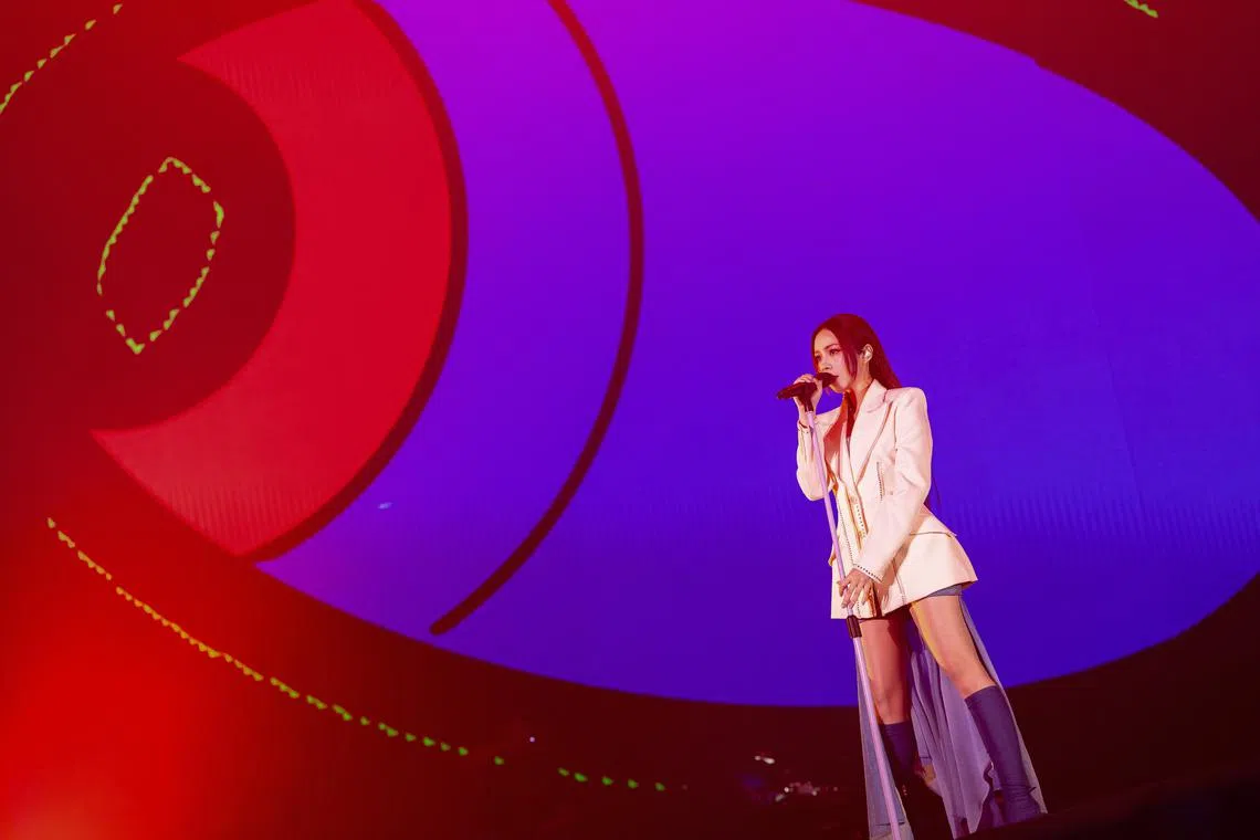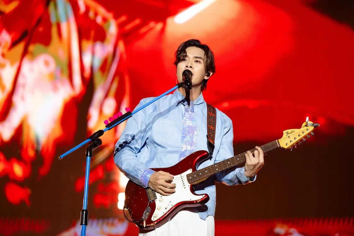 Taiwanese band Accusefive, made up of (from left) vocalist and guitarist Edward Pan, vocalist Chuan Ching and drummer Richard Lin, performed at the Singapore Indoor Stadium on June 22.