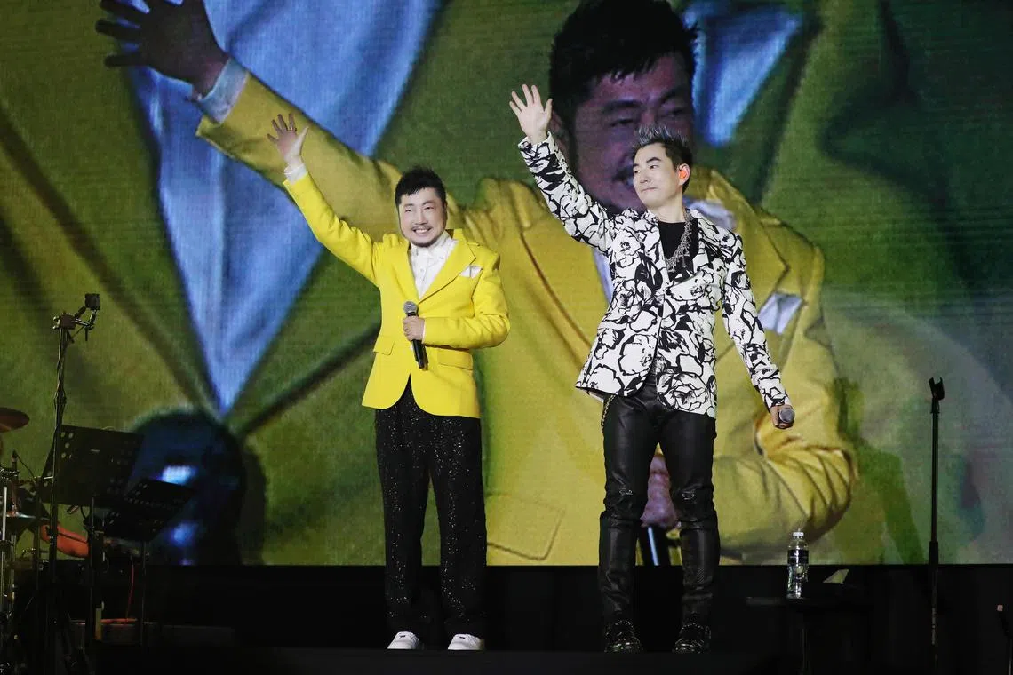 Richie Jen (right) with his guest performer Johnny Chen, who wrote many of Jen’s famous songs.
