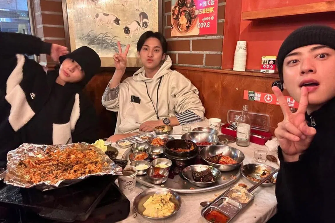 From left: BTS’ Jungkook, Seventeen’s Mingyu and Astro’s Cha Eun-woo on a night out. They are all part of an A-list K-pop friend group known as the 97-liners, with members all born in 1997.
