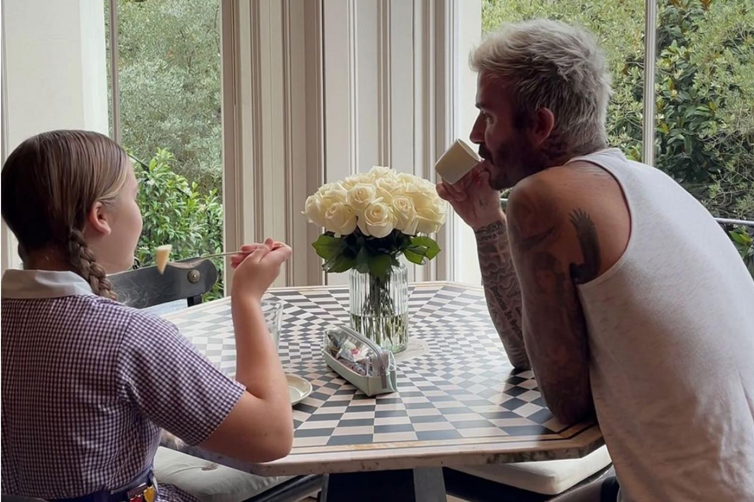David Beckham posted a photo of him and his daughter at the dining table having breakfast.