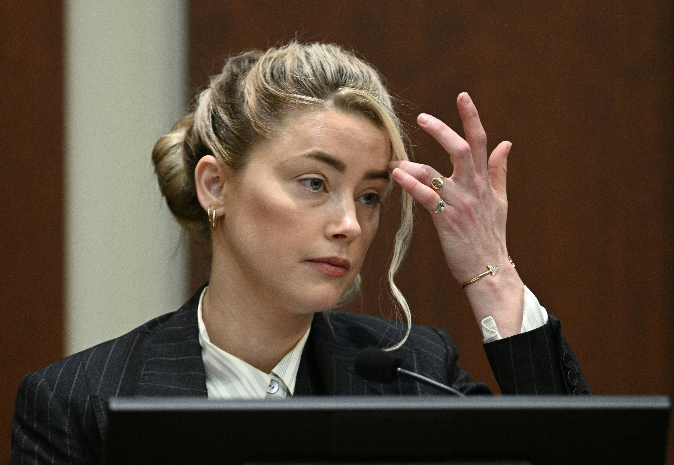 Amber Heard testifies in court, in Fairfax, Virginia, on May 17, 2022.