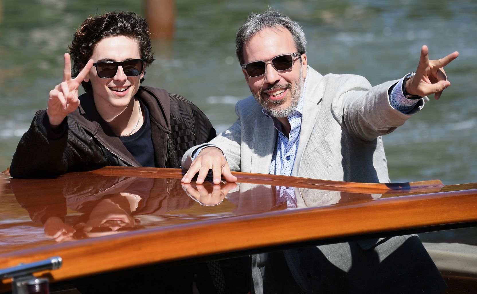 US actor Timothee Chalamet (left) and Canadian director Denis Villeneuve arrive for the 78th annual Venice International Film Festival.