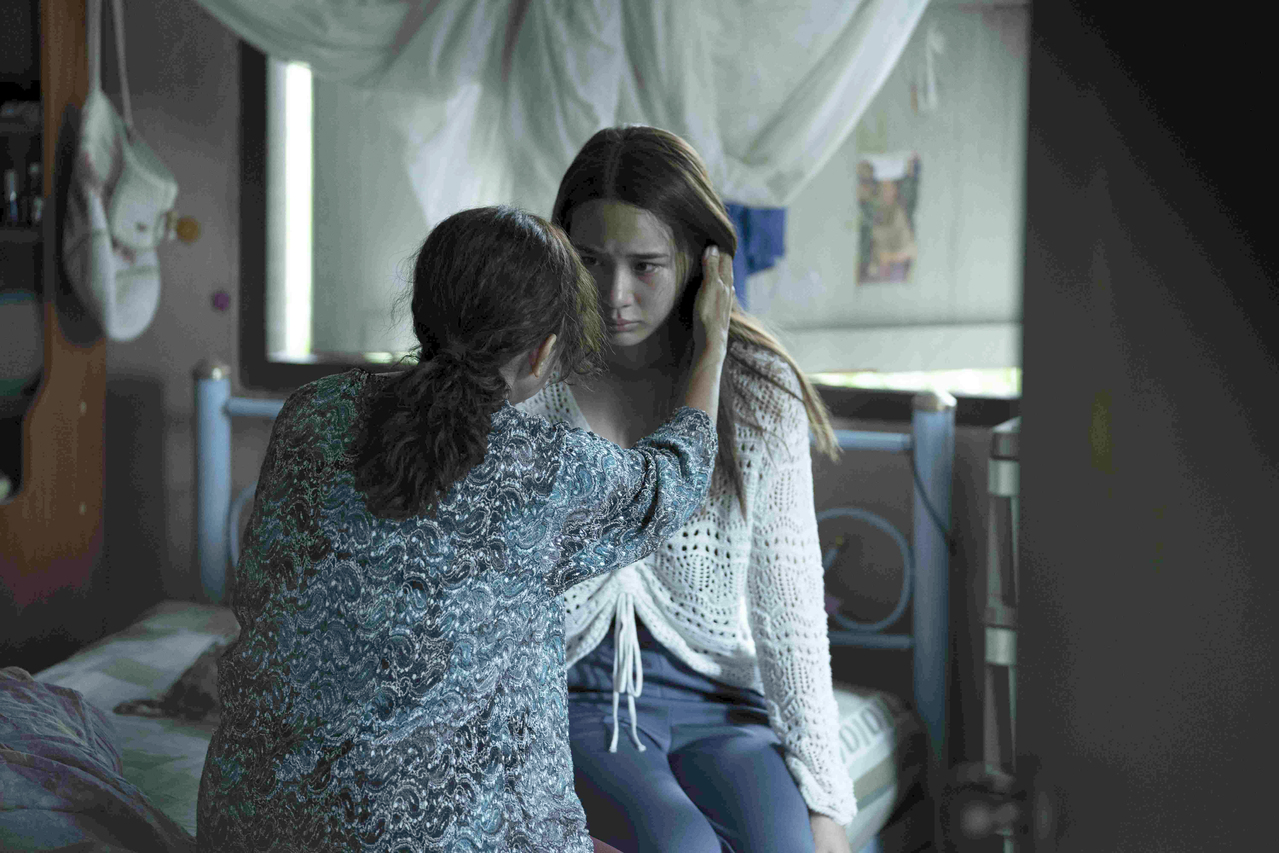 A still from The Medium starring Narilya Gulmongkolpech (in white) and Sawanee Utoomma.