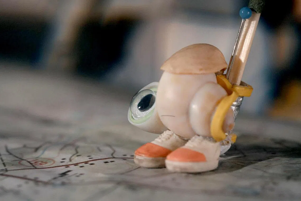 Marcel heads out on an adventure in search of his family in Marcel The Shell With Shoes On, a stop-motion animated feature.