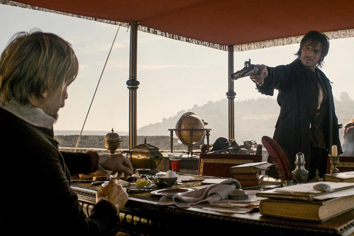 Young, hot-headed D’Artagnan (Francois Civil) has aligned with ageing Athos (Vincent Cassel), foppish Aramis (Romain Duris) and perpetually sloshed Porthos (Pio Marmai) upon arriving in Paris to find a civil war brewing between Catholic royalists and Protestant republicans.