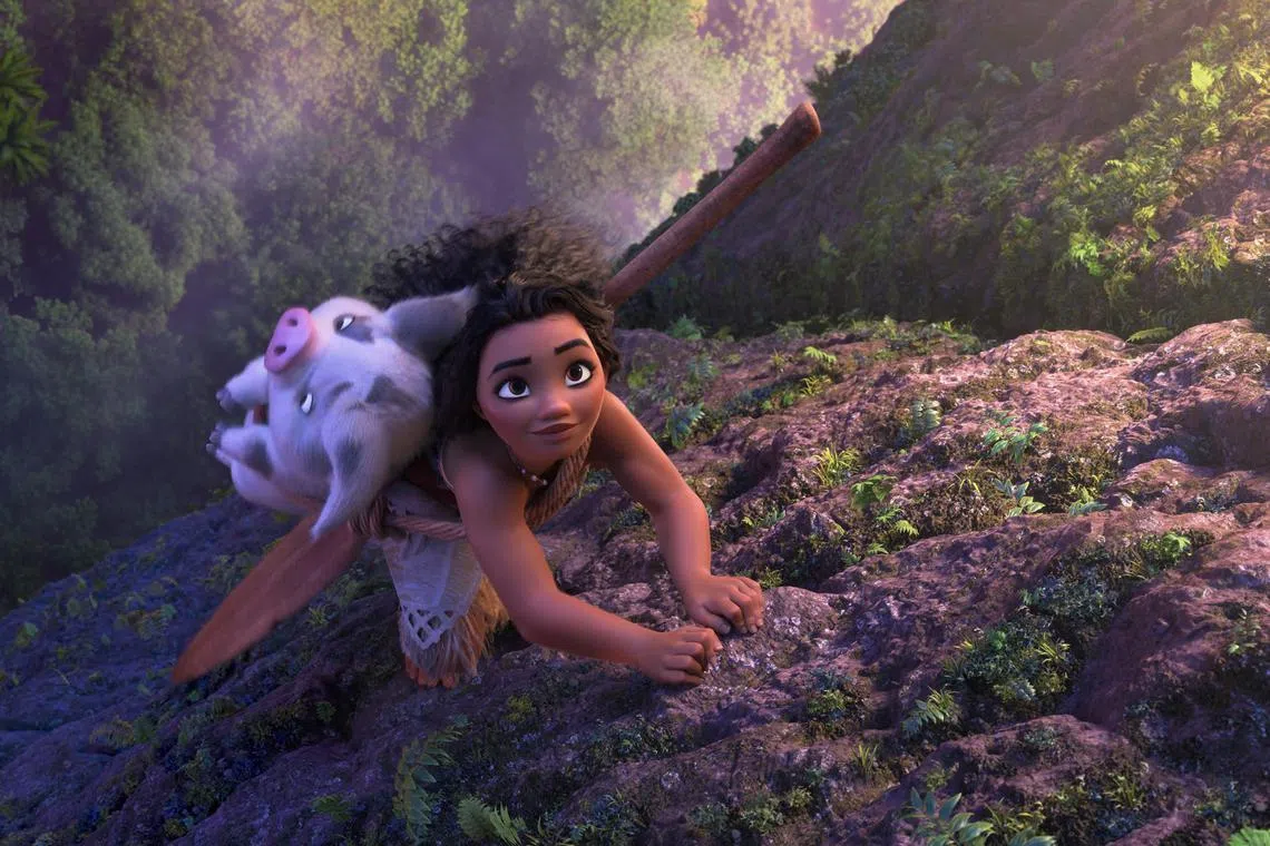 Pua the pig and Moana (Auliʻi Cravalho) in Moana 2.