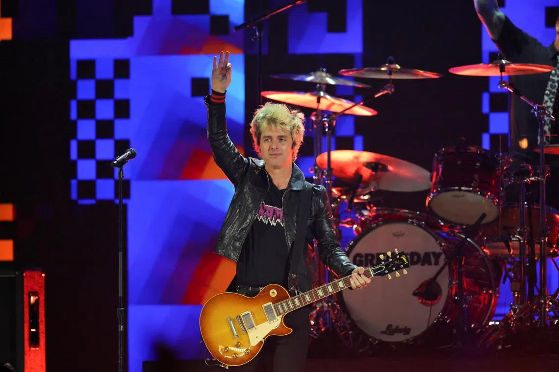 Billie Joe Armstrong of Green Day gestures during the FireAid benefit concert for Los Angeles wildfire relief efforts.