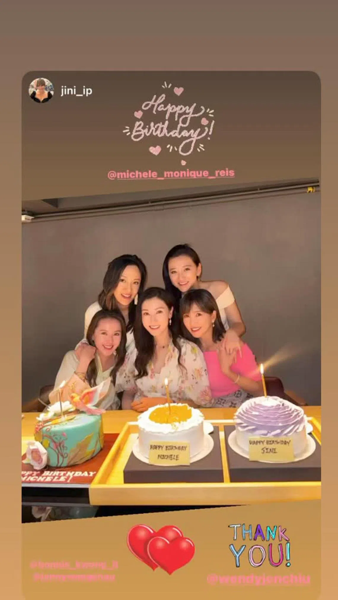 She reposted on Instagram Stories several photos of her birthday celebrations. In one photo, she was also celebrating the birthday of one of her good friends. The name “Jini” was on one of the three birthday cakes.