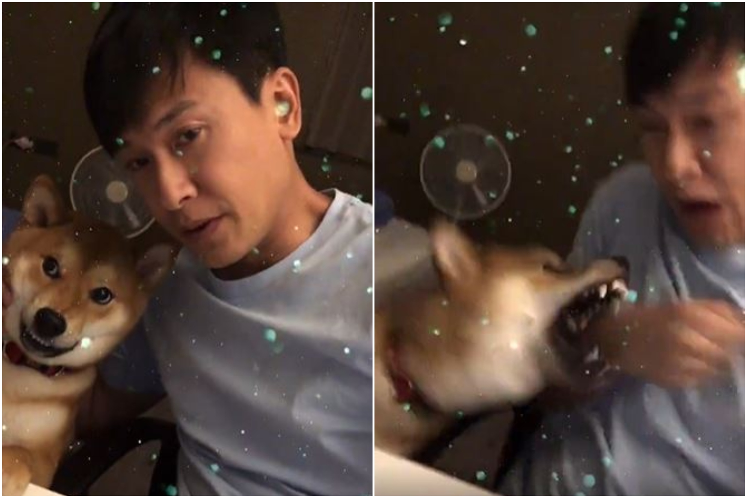 The 44-year-old former Mediacorp star was barely minutes into the chat when the Shiba Inu named Debu lunged at his arm and bit him.