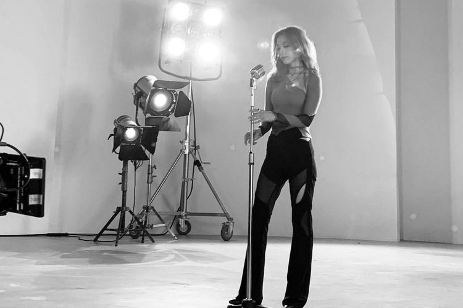 In the Instagram post on Friday, Sunye is seen in two black-and-white photos, looking willowy and effortlessly cool while standing by a microphone.