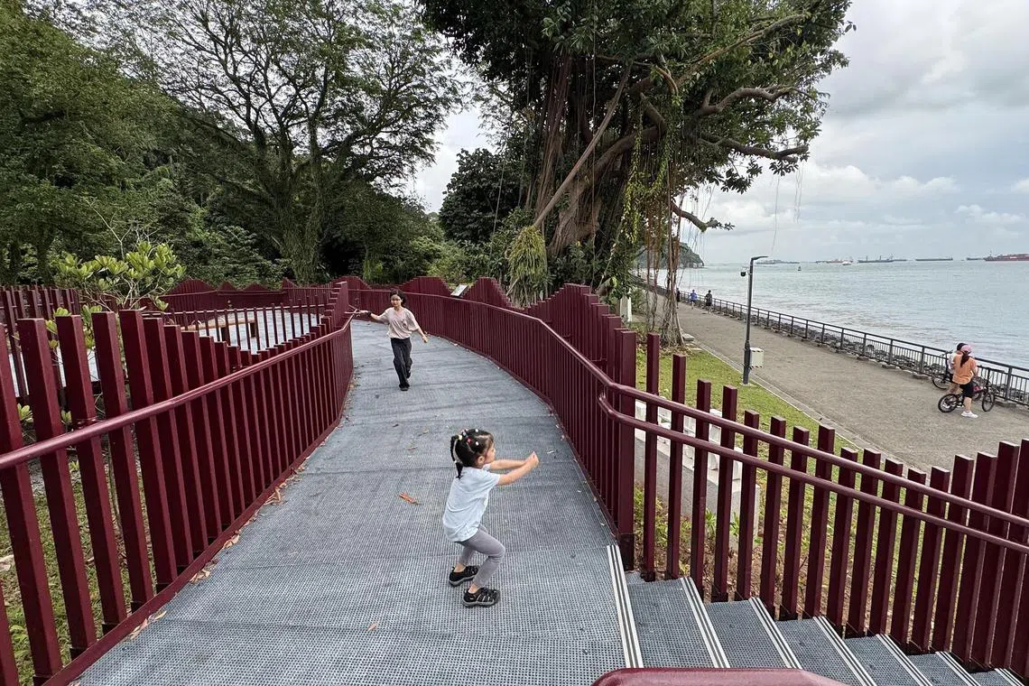 The rest stops include Iora’s Nest, a lookout point with a weave-like design inspired by the nest of the common iora, the yellow and black bird found in Singapore.