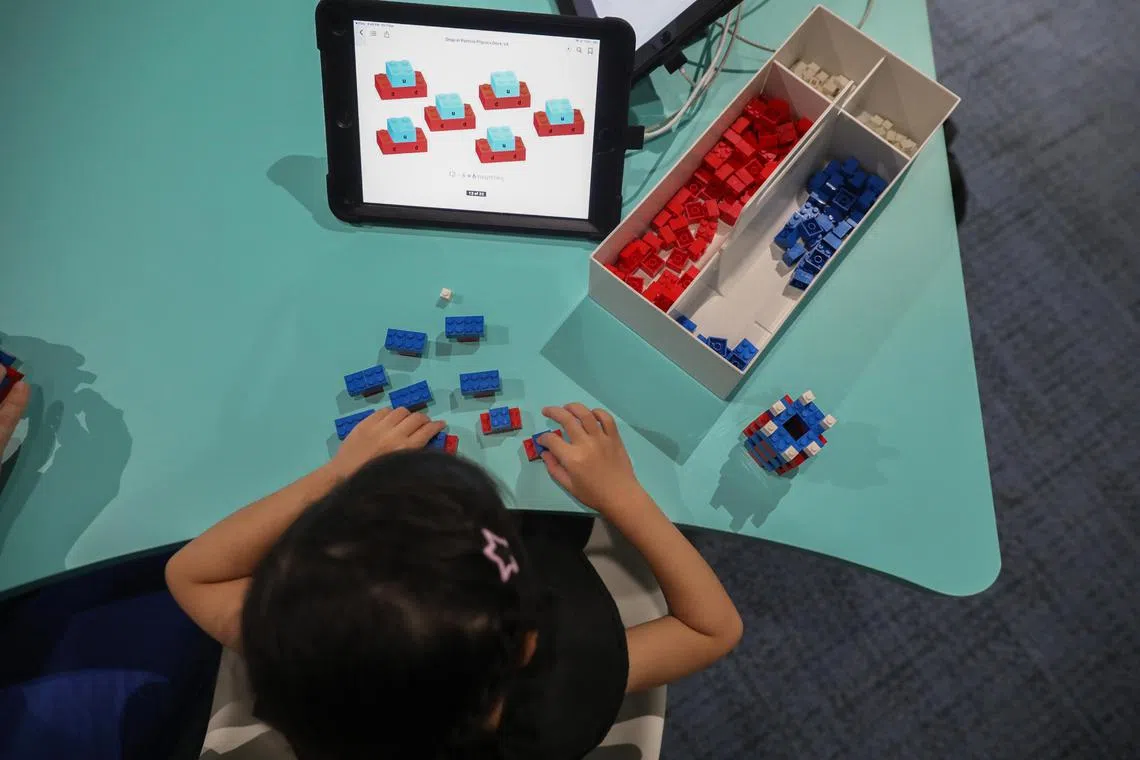 Kids can use Lego blocks to build a carbon using different coloured bricks that represent protons, neutrons and electrons at the ArtScience Laboratory.