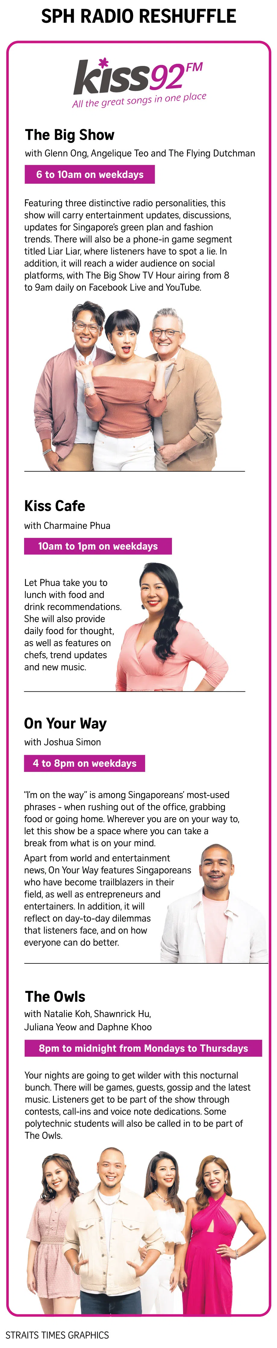 As for the biggest change, the move of The Big Show, Mr Low said Kiss92 listeners like the revamp so far, going by comments on its Facebook page.