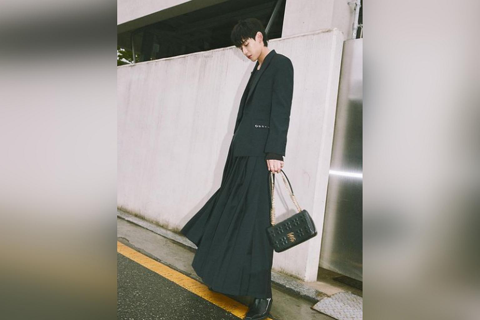 SEOUL - K-pop boy band Got7's BamBam rocks an all-black ensemble of a jacket, long skirt and high-heeled boots in his latest ad for British brand Burberry.