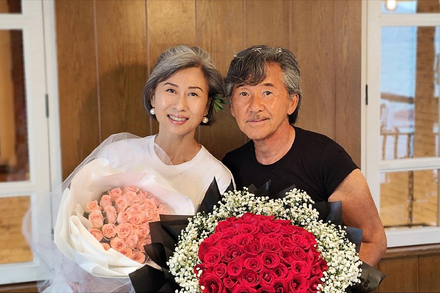 Sally Yeh (left) posted on Weibo on July 21 a photo of herself and her husband George Lam as they celebrate their 26th wedding anniversary.