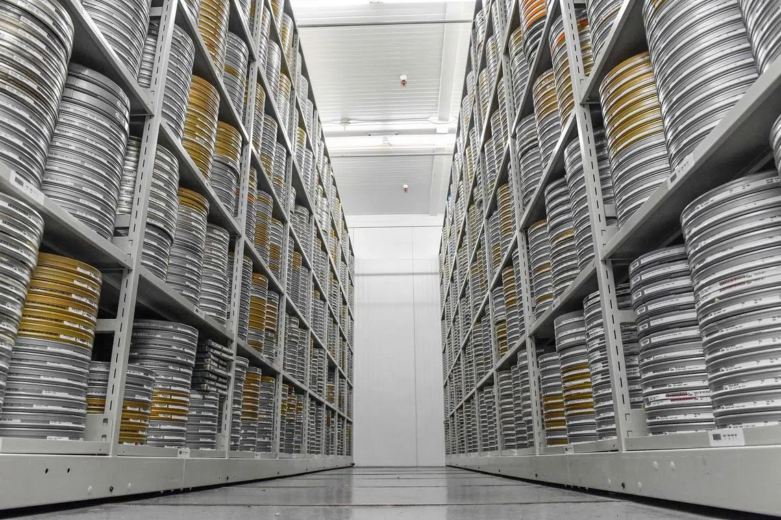 Film reels being preserved in the cold vault at Pro-Tek Vaults.
