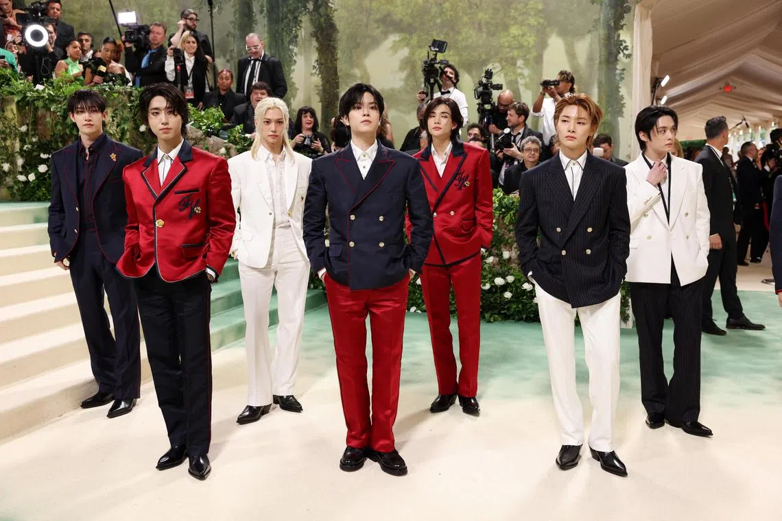 K-pop boy band Stray Kids at the 2024 Met Gala in New York on May 6.