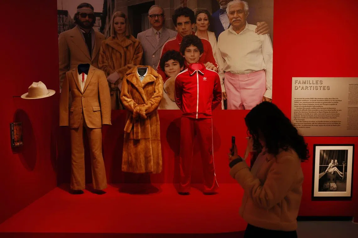 Costumes from the 2001 movie The Royal Tenenbaums are on display at the Wes Anderson exhibition at Cinematheque Francaise.