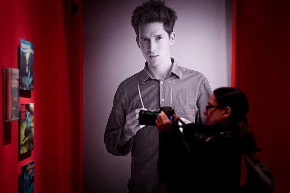 A portrait of film director Wes Anderson in his earlier years at the Cinematheque Francaise exhibition in Paris.