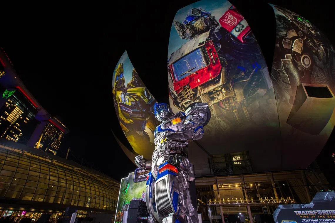 The 4.5m life-size statue of Autobot Mirage made its Asian debut at the entrance of ArtScience Museum, as part of the Transformers: Rise Of The Beasts world premiere in Singapore on May 27.
