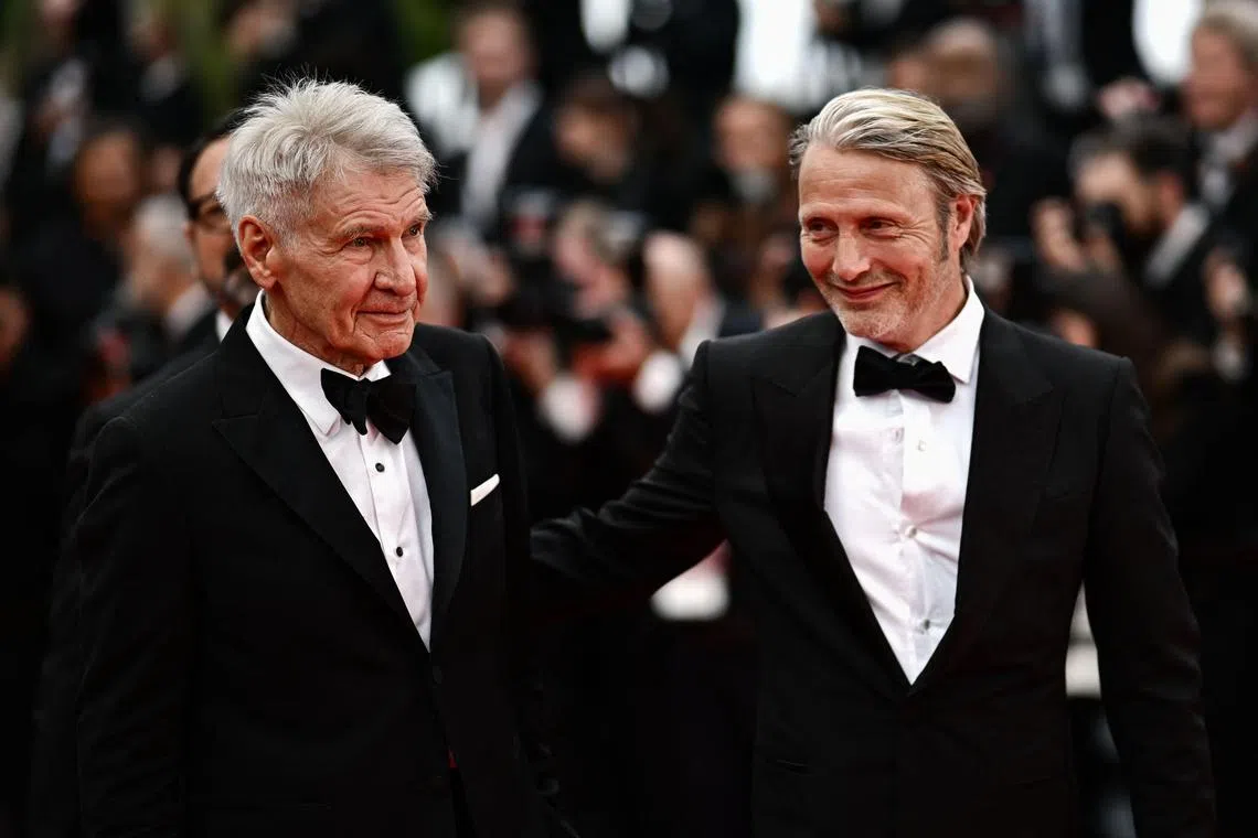 American actor Harrison Ford (left) and Danish actor Mads Mikkelsen at the screening of Indiana Jones And The Dial Of Destiny during the Cannes Film Festival in France on May 18, 2023.