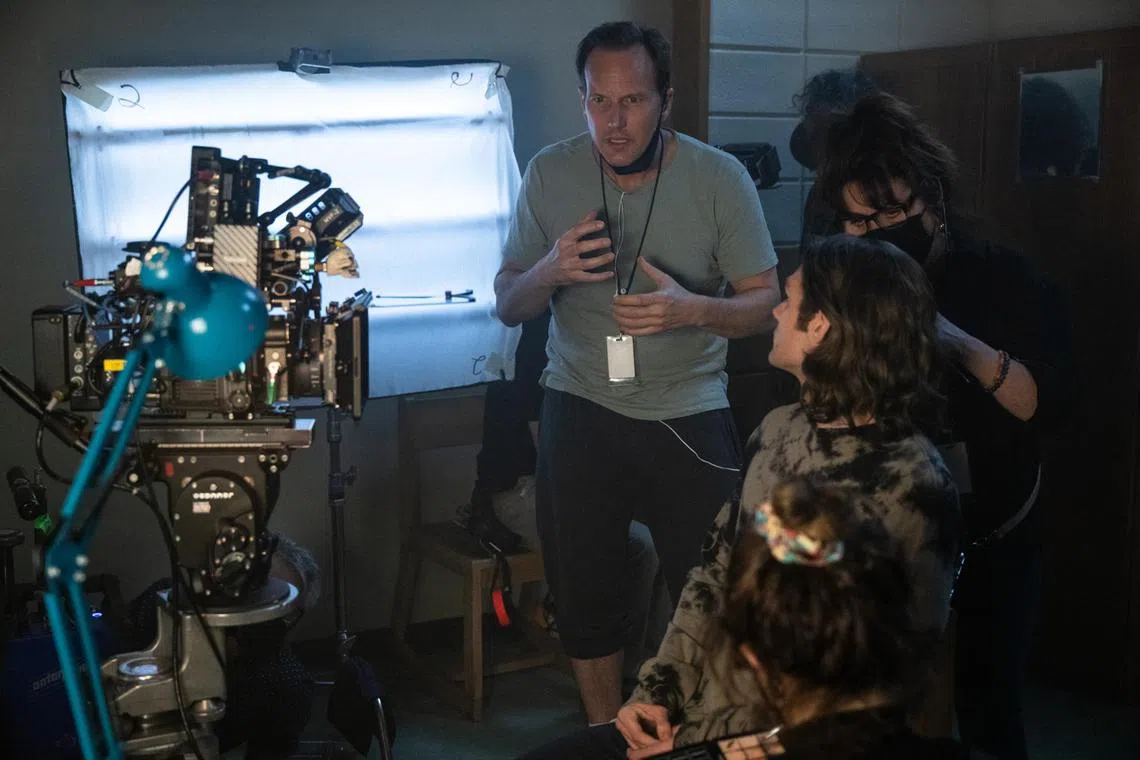 Patrick Wilson (standing) directing a scene on the set of horror sequel Insidious: The Red Room.