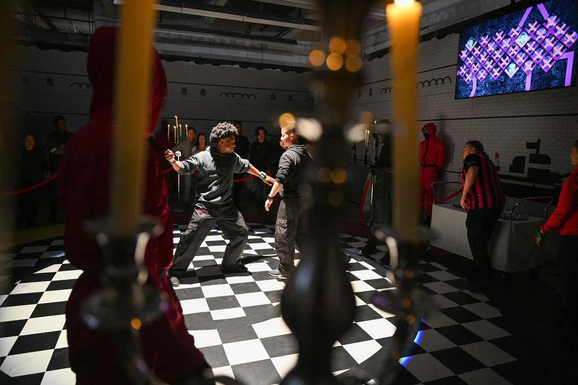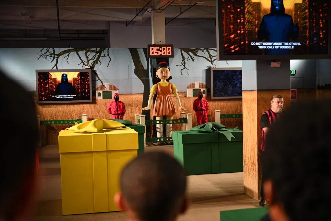 In a series of rooms, organisers of the immersive LA attraction have set up harmless versions of the brutal games depicted in the series, in which misfits and criminals took an all-or-nothing gamble: win the prize of 45.6 billion won (S$46.4 million) or die.