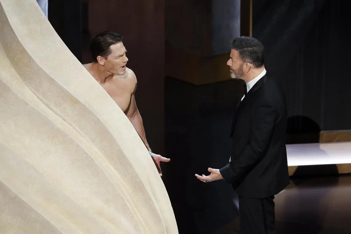 Actor and wrestling star John Cena walked on stage wearing nothing but the envelope containing the name of the winner of the best costume Oscar.