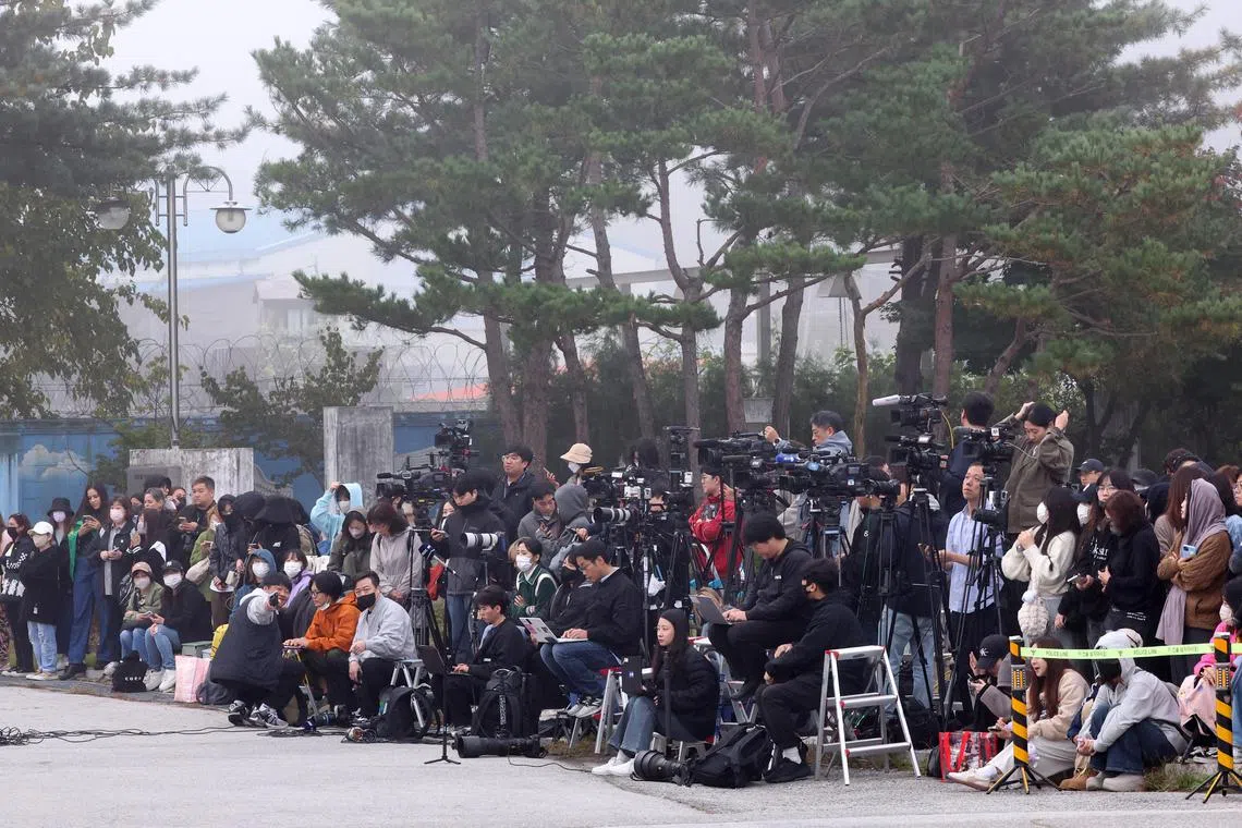 A group of journalists waiting for the discharge of J-Hope in front of the 36th Army Infantry Division boot camp in Wonju, South Korea, on Oct 17.